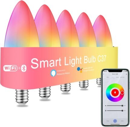 Smart Light Bulbs E12 RGB+CCT Led WiFi+Bluetooth Smart Bulbs 300lm 40W Equivalent Multicolor and Dimmable, Halloween light bulbs Work with Alexa Google Smart Things WiFi(2.4GHz) No Hub Required 5Pack