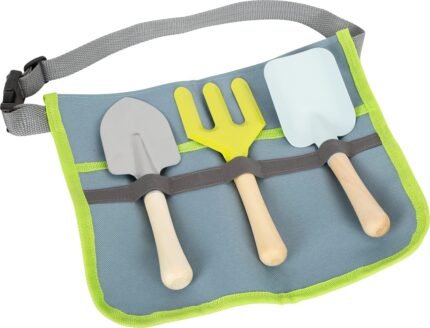 Gardening Toolbelt by Small Foot – 4 Piece Kids Set Includes Adjustable Belt, Shovel, Rake & Spade – Sturdy Metal Heads and Wooden Handles – Develops Motor Skills & Creative Play – Ages 3+ Years