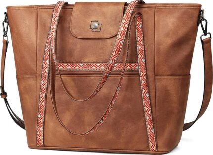 FADEON Large Laptop Tote Bag for Women Designer Leather Laptop Bag Fashion Travel Backpack Purse Shoulder Handbag