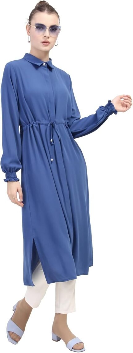 Long Tunic for Women Long Sleeve Side Slit Belted Waist Casual Abaya Maxi Size Option