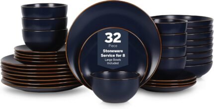 Stone Lain Brasa Modern Stoneware 32 Piece Dinnerware Sets, Plates and bowls Sets, Dish Set for 8, Blue