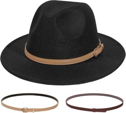 Price: (as of – Details) Product Description HUDANHUWEI Women’s Wide Brim Felt Fedora Panama Hat with Leopard Belt Buckle Hat