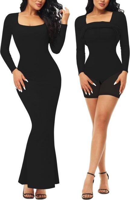 Fengbay Shapewear Dress for Women Bodycon Dress with Built in Shapewear Shaper Dress Square Neck Lounge Long Dress