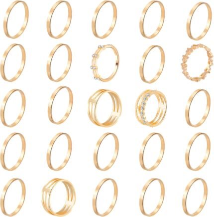 ONESING 18-31 Pcs Knuckle Rings for Women Stackable Rings Sets Vintage Joint Finger Rings Gold Rings Set for Women Men Hollow Carved Flowers Crystal Rings