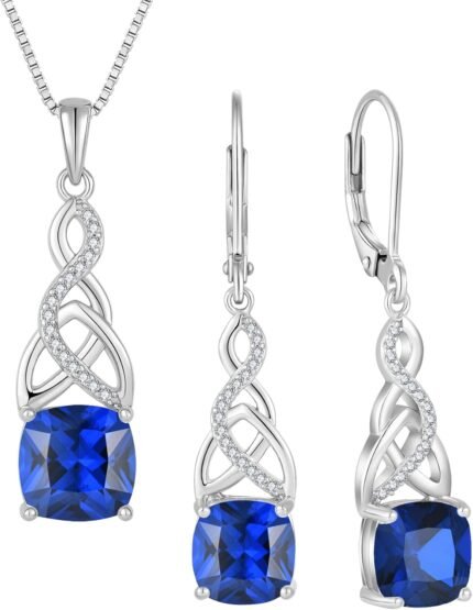 Infinity Irish Celtic Knot Jewelry Set for Women Princess Cut Sapphire Necklace & Earrings September Birthstone Jewelry Gifts