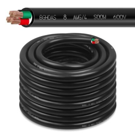 50ft 8/4 8 AWG Portable Power Cable (4 Conductor) – SOOW 600V 8 Gauge Electric Wire for Motor Leads, Portable Lights, Battery Chargers and Machinery – 4 Conductor – 50 Feet Electrical Cord