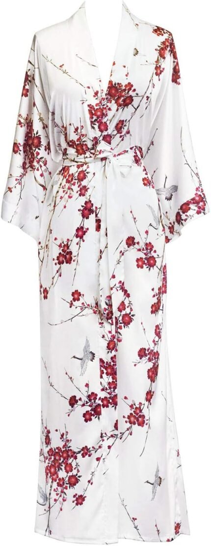 KIM+ONO Women’s Charmeuse Kimono Robe Long – Watercolor Floral