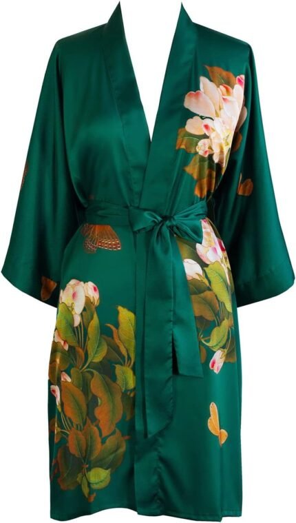 KIM+ONO Women’s Kimono Wrap – Watercolor Floral, Charmeuse Kimono Wrap for Women and Men