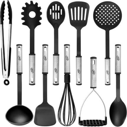 Kitchen Utensils Set, 10 Nylon Stainless Steel Cooking Utensils, Non Stick and Heat Resistant Cookware set New Chef’s Gadget Tools Collection