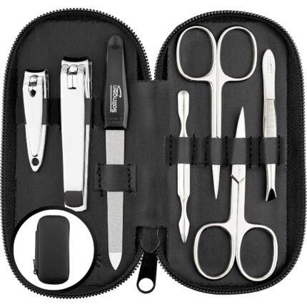 marQus Manicure Set Solingen Made in Germany – 7 piece stainless steel exclusive finger & toe nail clippers set in Nappa black leather case, made in Solingen Germany* (except for clippers)