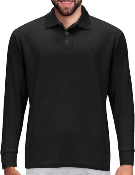 Premium Wear Long Sleeve Polo Shirt for Men, Cotton-Blend Fabric Golf Shirt with Collar, 3-Button Placket, Stain Guard