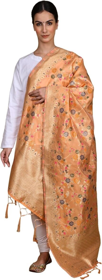 Women’s Art Silk Dupatta with All Over Brocaded Beautiful Silk Floral Ethnic Design Stole/Scarf/Chunni