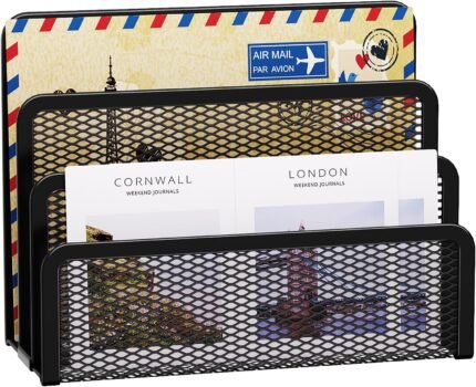 Marbrasse Mail Organizer for Desk, 3-Slot Mesh Metal Mail Holder countertop, Letter Holder, Office Desktop Envelope and Document Storage Rack (Black)