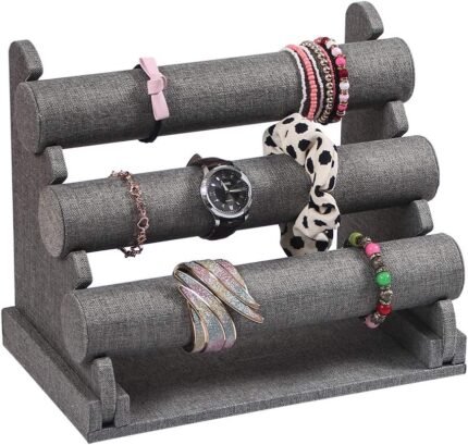 Coward 3 Tier Detachable Bracelet Holder Watch Stand for Jewelry Organizer and Hairband Display (Gray Linen)