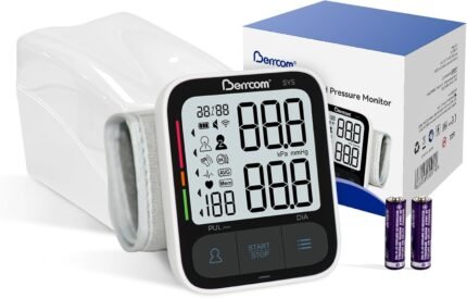 Berrcom Wrist Blood Pressure Monitor for Home Use, Automatic Digital BP Machine with Voice Broadcast, Large LCD Display, 2×120 Memory, Portable Case Included