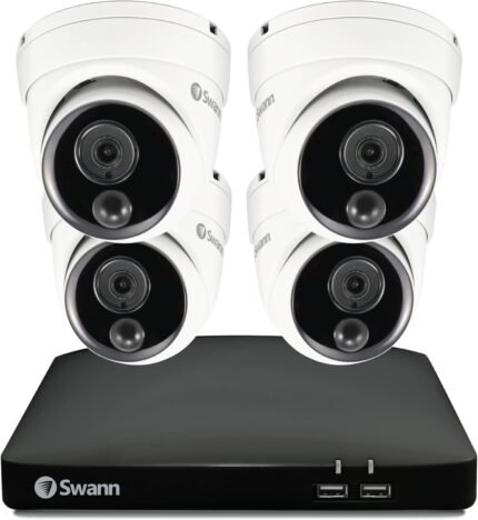 Swann Home DVR Security Camera System with 1TB HDD, 4 Channel 2 Camera, 1080p Full HD Video, Indoor or Outdoor Wired Surveillance CCTV, Color Night Vision, Heat Motion Detection, LED Lights, 445802