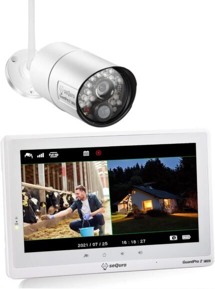 seQuro Wireless Security Camera Monitor System with 7″ Touchscreen Monitor & 2PCS HD Outdoor Bullet Cameras, Two-Way Audio, Night Vision, Waterproof, Motion Sensor, Free APP, Home Security DVR Kit