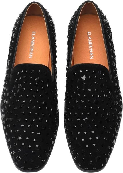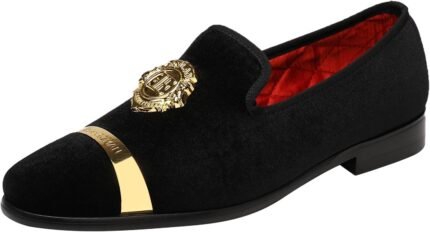 ELANROMAN Men’s Velvet Loafers Dress Fashion Wedding Party Prom Shoes