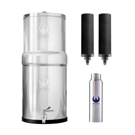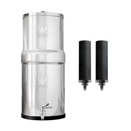 Phoenix Gravity-Fed 2.25 Gallon Stainless Steel Camping & Countertop Water Filter System with Authentic NSF Certified Black Phoenix Filter Elements and Stainless Steel Tap