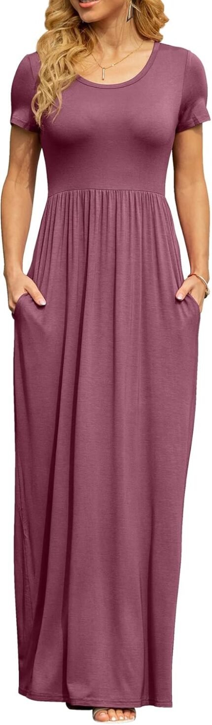 DB MOON Women’s Short Sleeve Maxi Dresses Casual Empire Waist Long Dress with Pockets