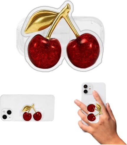 Phone Grip Cute 2D Shape Collapsible Expandable, Smartphone Tablet Cell Phone Grip Stand Holder (Cherry-9)