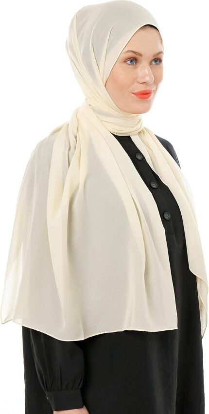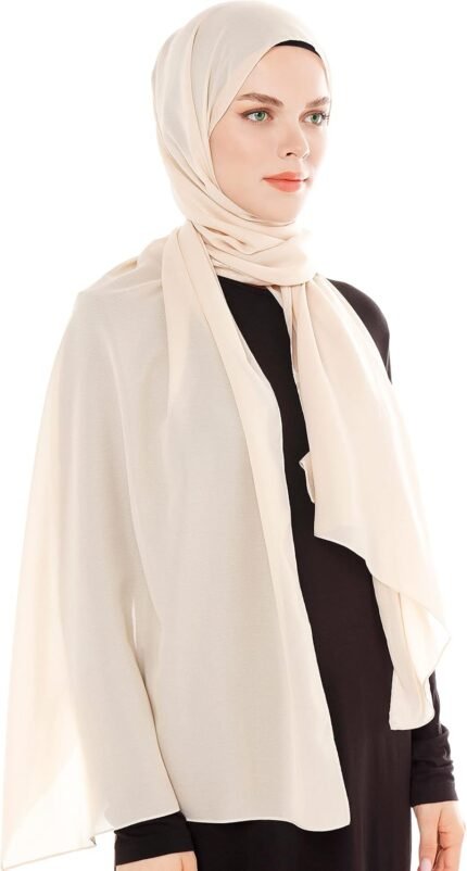 Chiffon Hijab Scarf for Women – Cream Chiffon Hijab Muslim Headscarf – Soft Fashion Scarf Muslim Headscarf Shawl (Cream)