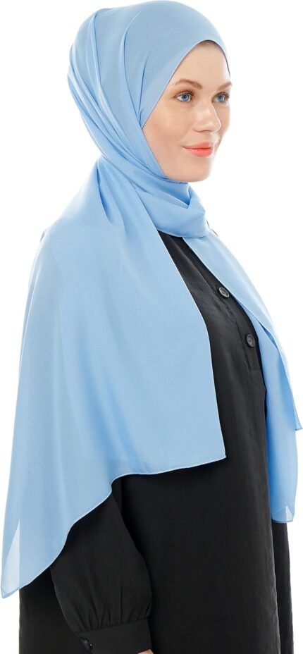 Chiffon Hijab Scarf for Women – Light Blue Chiffon Hijab Muslim Headscarf – Soft Fashion Scarf Headscarf Shawl (Light Blue)