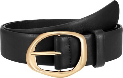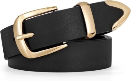 JASGOOD Women’s Fashion Leather Belt Ladies Gold Buckle Leather Belt for Jeans Pants Dresses