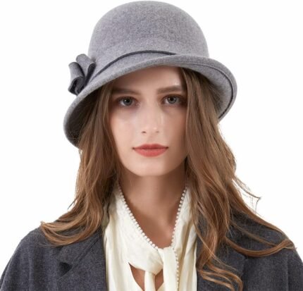 Ladies Wool Felt Bucket Hat Women Vintage Cloche Fedora Winter Church Bowler Hat with Bow