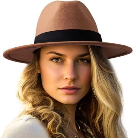 Gossifan Women Two Tone Wide Brim Fedora Felt Panama Hats Classic Belt Buckle
