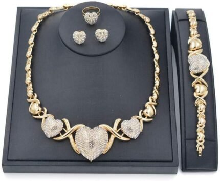 Price: (as of – Details) Product Description double hearts Jewelry Set [Material] 14K gold-plated + natural rhinestones[4 pieces of jewelry