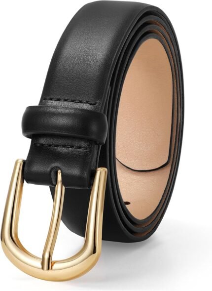 JASGOOD Women Casual Leather Belt for Jeans Pants Dress, Fashion Ladies Waist Belt with Gold/Silver Buckle