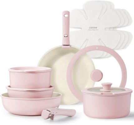 Price: (as of – Details) Customers say Customers love the cookware set’s beautiful ceramic design and appreciate its durability, with