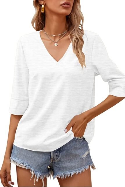 Price: (as of – Details) Product Description Grlasen Women’s Fashion Half Sleeve V-Neck T-Shirt The video showcases the product in