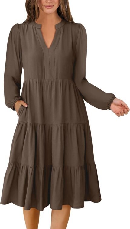 Price: (as of – Details) Product Description Annebouti Womens 2024 New Fall Long Sleeve Flowy A Line Midi Dress with