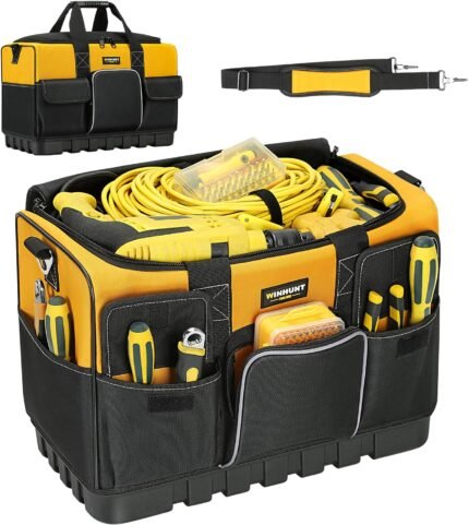 Tool Bag, 18-inch Tool Organisers, 600 Denier Large Tool Bag for Home DIY & Equipment Storage, Yellow and Black (46cm/18inch)
