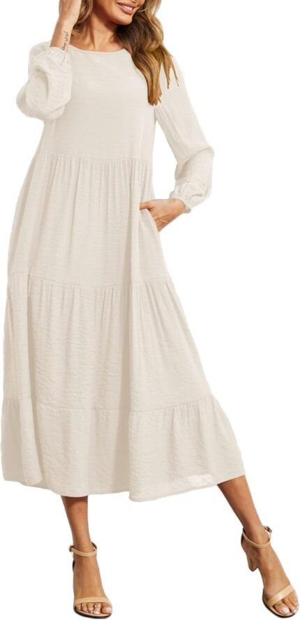 Price: (as of – Details) Product Description Women’s Casual Long Sleeve Maxi Dresses Ruffle Flowy Long Dresses with Pockets Style: