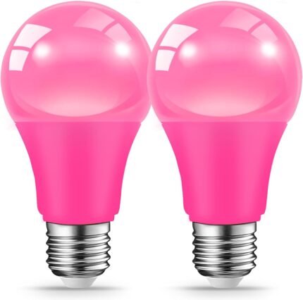 LED Pink Light Bulbs for Outdoor Indoor, 9W(60W Equivalent) E26 Base Pink Bulb for Christmas, Halloween,Wedding,Party,Bar,Porch,Holiday Lighting,Home Decor, 2-Pack