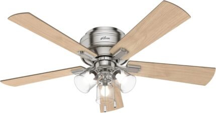 Hunter Fan Company, 54209, 52 inch Crestfield Brushed Nickel Low Profile Ceiling Fan with LED Light Kit and Pull Chain
