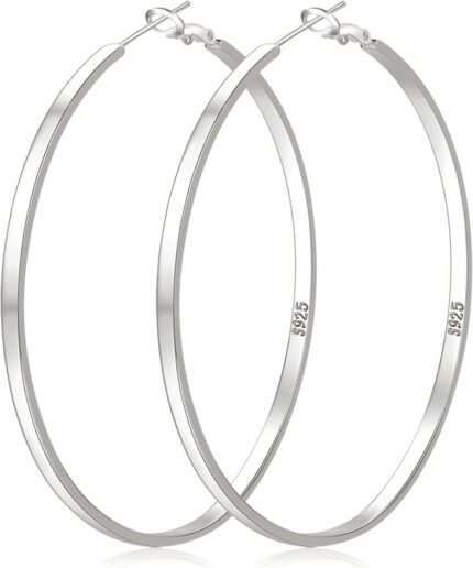 LOUMILEO Sterling Silver Hoop Earrings Large Silver Hoop Earrings for Women Lightweight Big Hoops Earring Hypoallergenic Thin Hoops Earring for Women 30/40/50/60/65/70MM