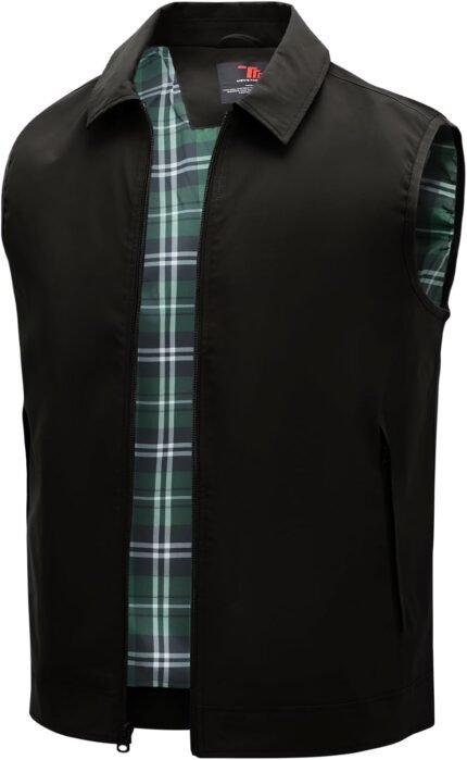 TBMPOY Men’s Vest Casual Outerwear Lightweight 3 Zip Pockets Golf Sleeveless Jackets Summer Fall Full Zip Vest Travel