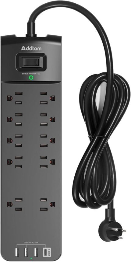 Power Strip – Addtam Surge Protector with 10 Outlets and 4 USB Ports, 6 Feet Extension Cord with Flat Plug, 2700 Joules, ETL Listed, Black