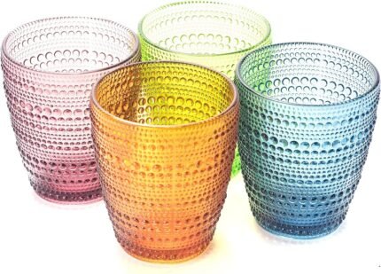 Drinking Glasses Set of 4 Colored Glass Cups Heavy Vintage Glassware 10 Oz for Water Juice Milk