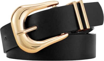 LEACOOLKEY Women’s Fashion Leather Belt Ladies Casual Formal Waist Belts for Jeans Dress Pants