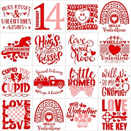 Valentine’s Day Stencils for Painting Reusable – 15 Pieces Valentine Small Reusable Painting Templates for Crafts,Kiss Love XOXO Heart Plastic Drawing Stencil for Home DIY Wall Rock Holiday Decor