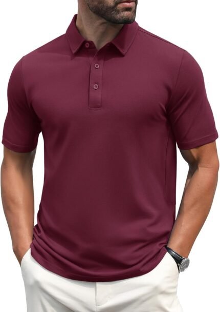 MAGCOMSEN Men’s Polo Shirts Short Sleeve Cotton Pique 3 Button Classic Fit Casual T-Shirt Performance Golf Shirts
