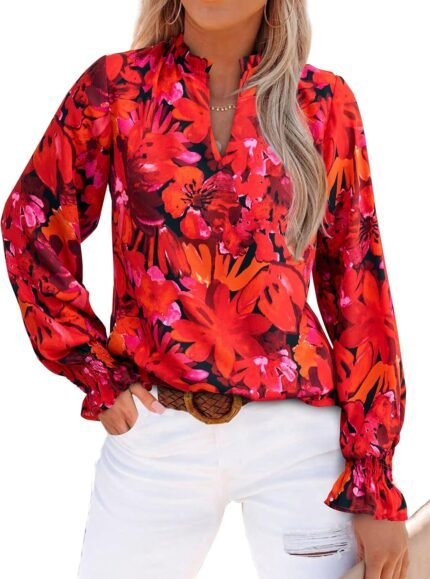 Price: (as of – Details) Product Description MASCOMODA Floral Long Sleeve Shirts for Women 2025 Bohemian Blouse The video showcases