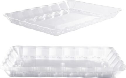 MATANA 6 Pack 13×9 Clear Plastic Serving Trays and Platters, Rectangle Large for Party, Reusable & Disposable for Food, Desserts, Cookie, Appetizers