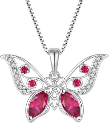 Celtic Knot Butterfly Necklace 925 Sterling Silver Birthstone Butterfly Irish Pendant Necklace Hypoallergenic Jewelry for Women Mother Her