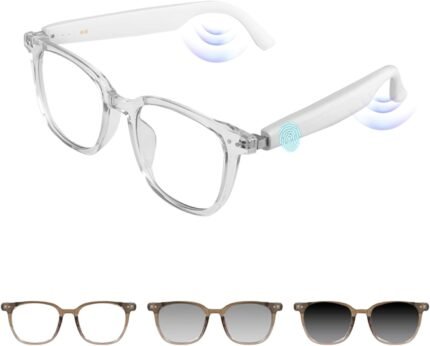 Smart Glasses, Anti-Blue Light Bluetooth Eyewear Built-in Mic. and Speakers, Open Ear Music and Hands-Free Calls, Touch and Voice Assistant Compatibility, 100h Long Battery Standby time